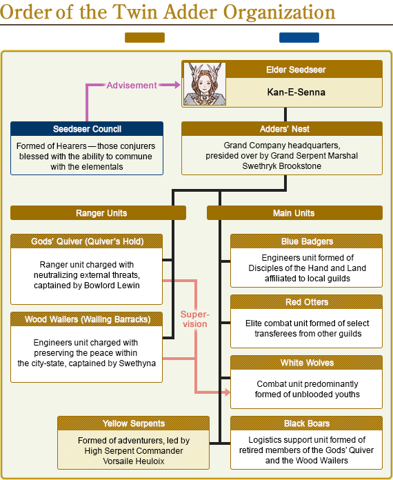 The word "Viera" itself means "people of the wood" and a Viera child is referred to as a "kit".Like the Keepers of the Moon, Viera tribes are a matriarchal society that is ruled by, and mostly comprised of, women. Viera men are rare and remain deeply solitary, except when they return to their village of birth every three to five years to mate.While the men are the primary defenders, Viera women still defend the forest but they also devote time to responsibilities such as clearing undergrowth, removing fallen trees, planting seeds and eradicating vermin among other tasks.The Viera refer to aether as Mist, as demonstrated by Fran Eruyt at Orbonne Monastery.The response the Wandering Dramaturge got after asking a Viera woman "if she did not find her tribe's ways awkward. Was it not within the natural order for males and females of a species to coexist?" was: